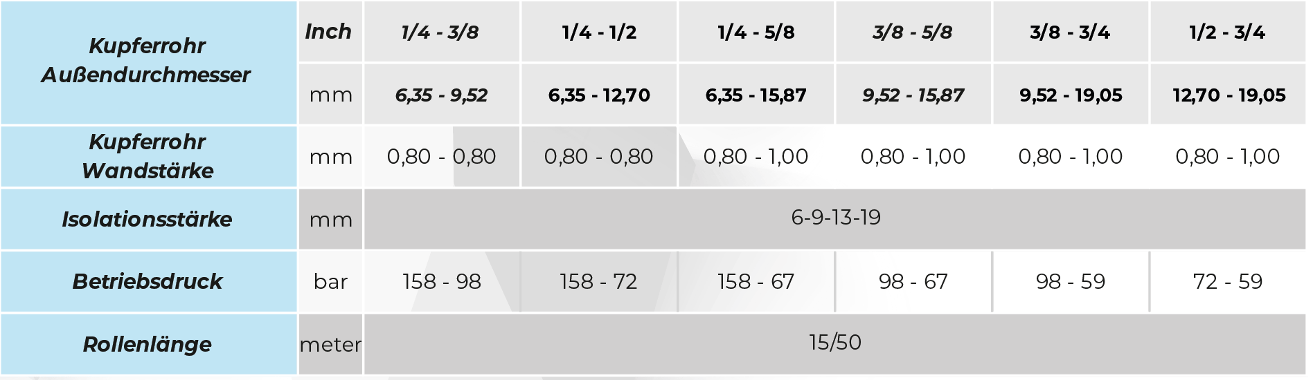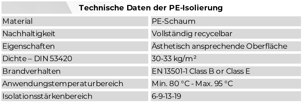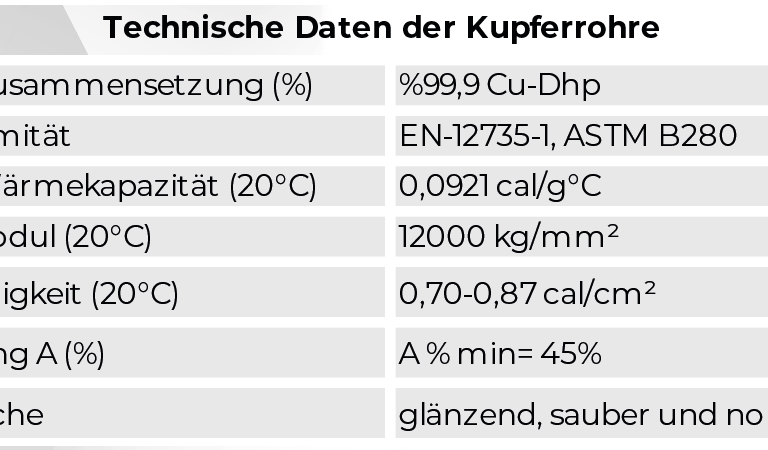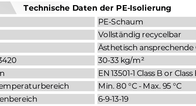 Die präzise gefertigten Kupferrohre entsprechen der Norm EN 12735-1 und gewährleisten konstante Wandstärken sowie hohe Druckbeständigkeit. Die hochwertige schwarze Isolierung schützt zuverlässig vor Energieverlust, Kondensatbildung und äußeren Einflüssen.