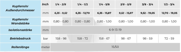 The precision-manufactured copper pipes comply with EN 12735-1 standards and ensure consistent wall thickness and high pressure resistance. The high-quality black insulation provides reliable protection against energy loss, condensation, and external influences.