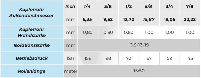 The combination of high-quality copper and high-performance pre-insulation ensures high energy efficiency, long service life, and reliable performance in professional HVAC applications.